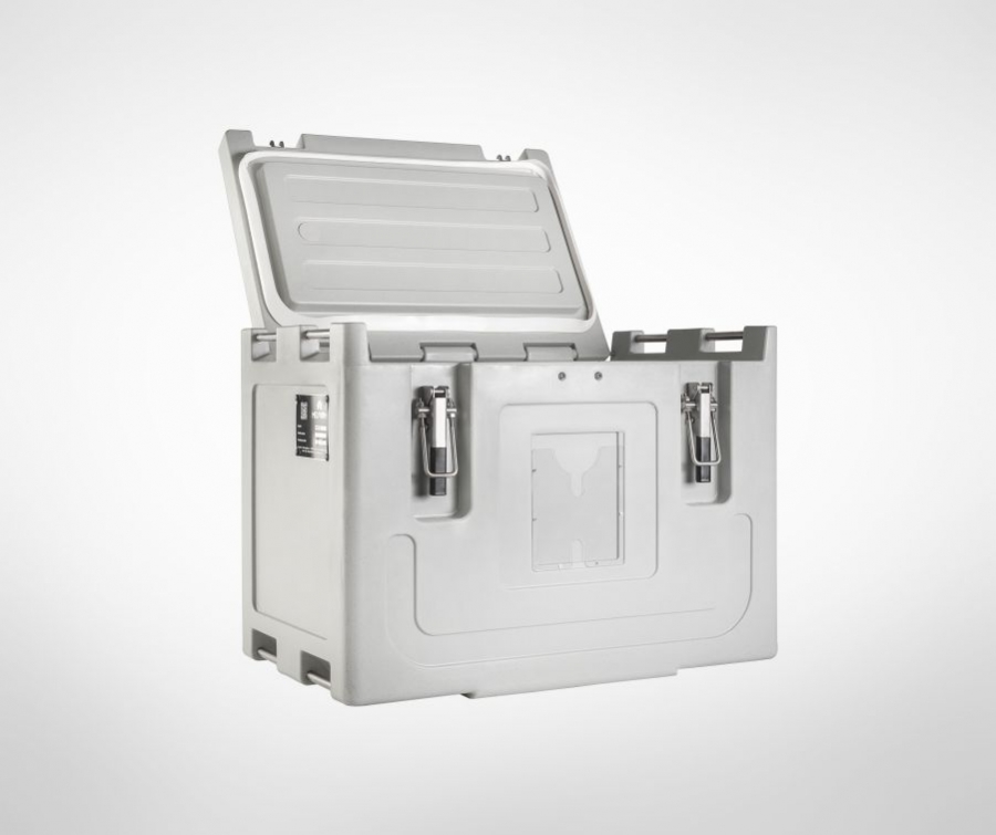 Izolowany pojemnik do przeładunku, przechowywania i transportu suchego lodu celem wyeliminowania jego strat objętościowych. Posiada wygodne otwieranie od góry i regulowane zamknięcie ze stali nierdzewnej. Pojemność ok. 75 kg suchego lodu w granulkach 3 mm i 60 kg w granulkach 10 mm.Dzięki specjalnym osłonom na pokrywie może być układany w stosy.
